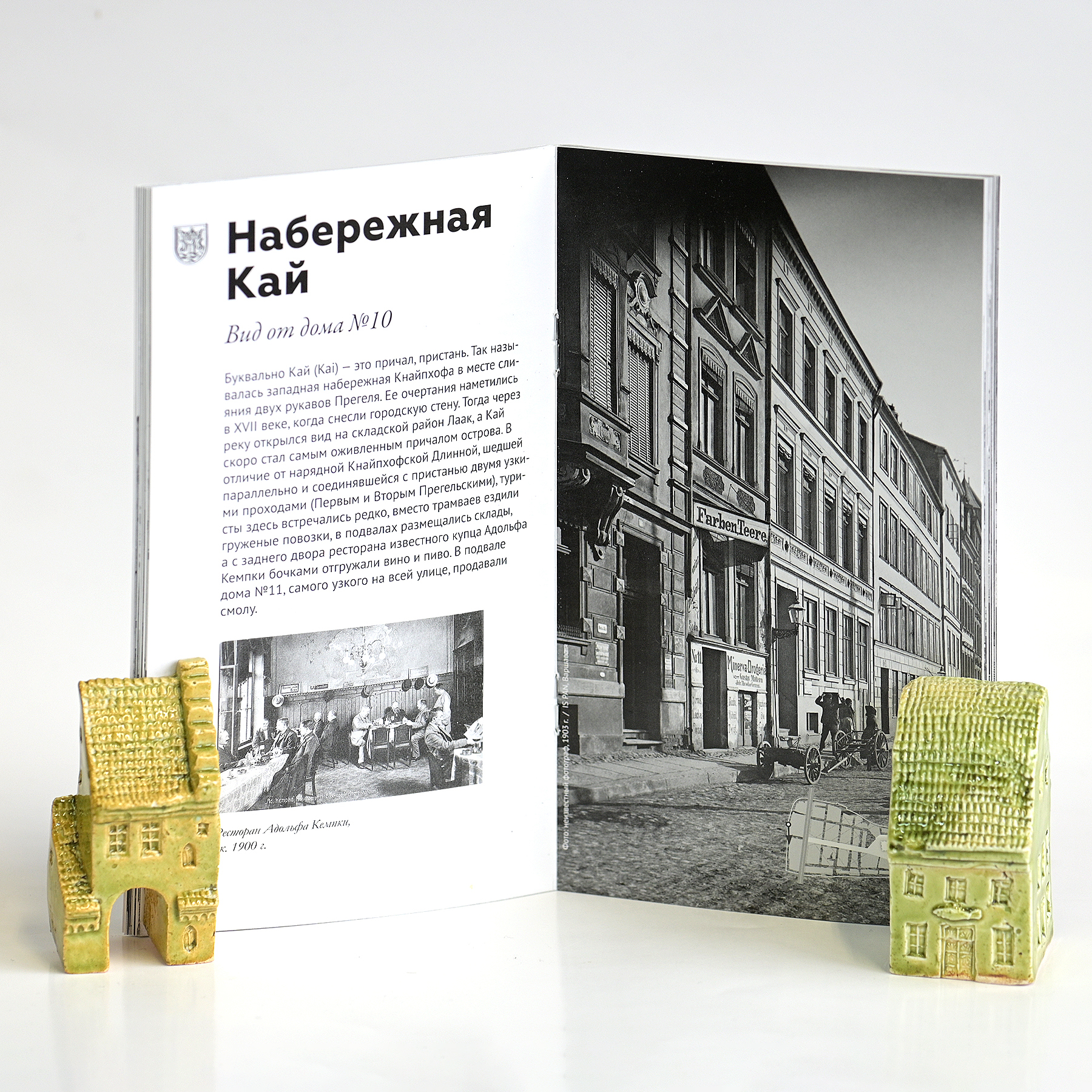 Исторический путеводитель по острову Кнайпхоф, выпущенный совместно с «Музеем города Кёнигсберг». В нем собраны отличные фотографии, дополненные историями старого города — про улицы, дома и их обитателей. Каждая большая фотография дополнена планом с точкой съемки и направлением взгляда фотографа.