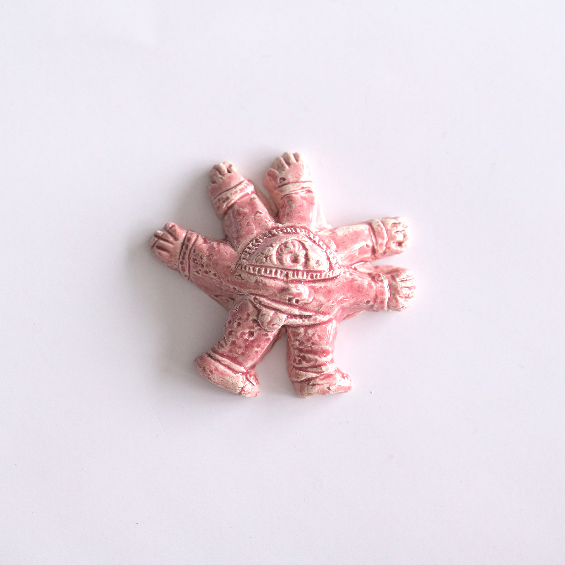 Миниатюрные изделия, выполненные из керамики и закреплённые на булавке с обратной стороны.