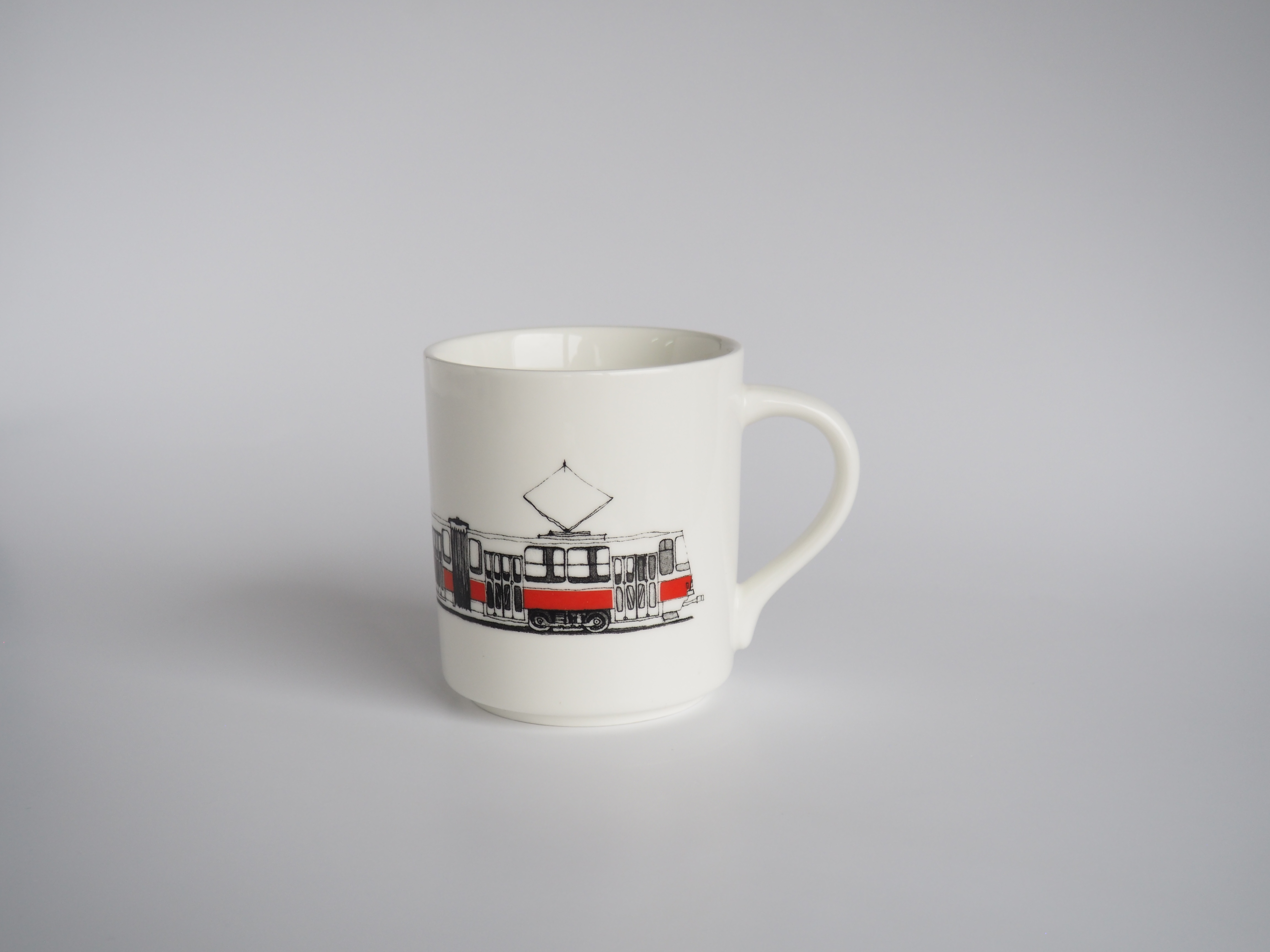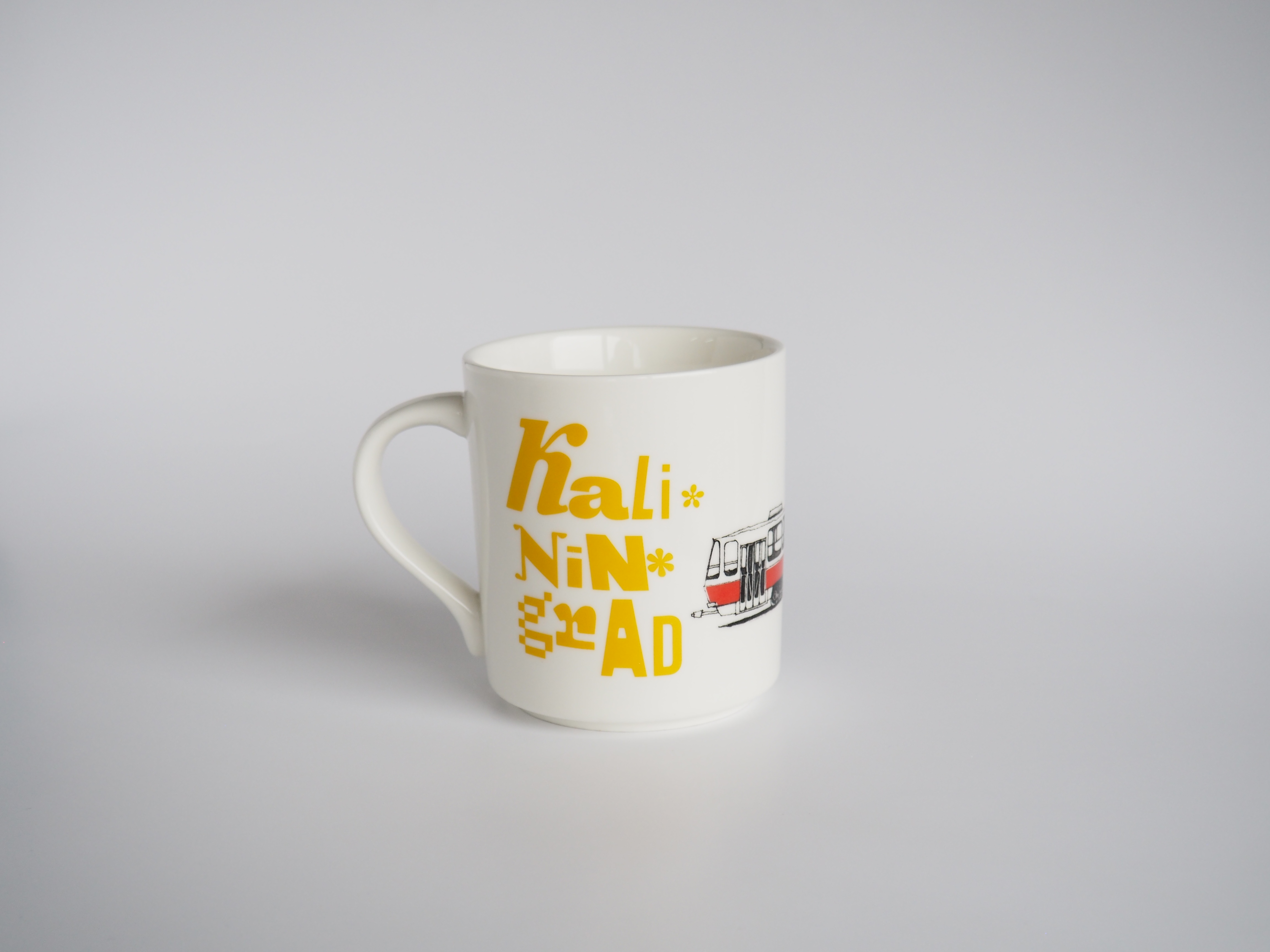 Кружка с калининградским трамваем. Позволяет пить холодные и горячие напитки.
